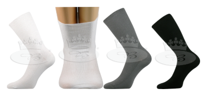 Dámské/pánské speciální ponožky českého výrobce Lonka® OREGAN vyvinuté pro diabetiky, pacienty s bércovými vředy a osoby s oteklými dolními končetinami. Jedinečný materiál umožňuje maximální roztažení ponožek. Tato extrémní roztažnost ponožek v žebrovaném úpletu a volný lem zamezuje otlakům a zaškrcení průtoku krve. Naše zkouška prokázala, že se do 1 ponožky vejdou 2 nohy! Řetízkovaná bezešvá špice zamezuje otlakům prstů, které mohou vzniknout při klasickém sešití