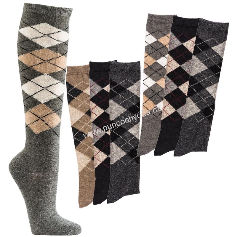 Teplé luxusní vzorované dámské-pánské vlněné podkolenky 6637 německého výrobce SOCKS 4 FUN, vlna-alpaka, norské motivy - vzor káro, jemný svěr lemu, hřejivý originální doplněk Vašeho oblečení, dodává distributor Stonožka.